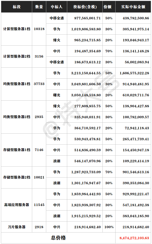 總價84.7億,中移動8.5萬臺服務器招標結(jié)果公示!