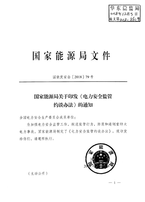 國家能源局:《電力安全監(jiān)管約談辦法》印發(fā)