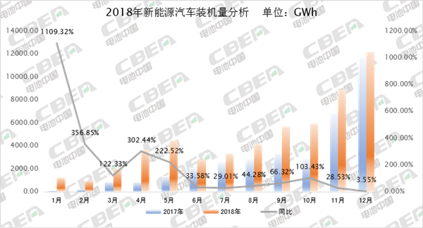 動力電池應(yīng)用分會研究部分析數(shù)據(jù)顯示,2018年11月,我國新能源汽車動力電池裝機(jī)量約8.91GWh,環(huán)比增長50.22%,同比增長28.53%;1-11月累計裝機(jī)總量約43.53GWh。