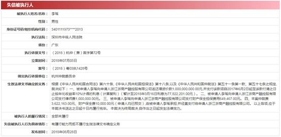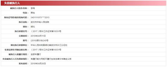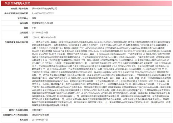 由于生效法律文書確定的情況全部未履行,沃特瑪李瑤分別被武漢市中級人民法院、深圳市中級人民法院、珠海橫琴新區(qū)人民法院、銅陵市中級人民法院列入失信被執(zhí)行人名單。