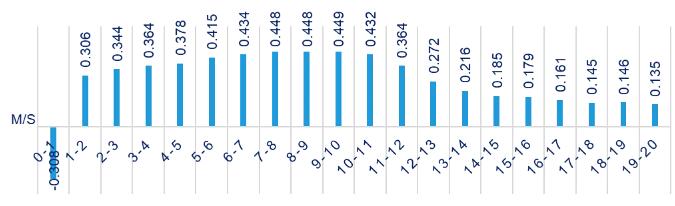 第二個項目位于山東菏澤,是具有一定代表性的平原項目,這個項目比較有意思的一點是,它的各個高度綜合擬合風切變達到0.41,像這樣的情況,我們就需要對它的切變進行一個更加詳細的針對性分析。在當地風切變變化體現在白天地表升溫,熱穩(wěn)定度降低,切變減小,夜晚切變增大,秋冬氣溫較低,大氣層結穩(wěn)定,風切變減小的規(guī)律。此外,在中低風速區(qū)間,地表障礙物的粘滯效應隨著風速增大而加強,使得切變也隨之增大,當風速達到強風水平,地表粘滯效應減弱,風切變逐漸回到較為平穩(wěn)的狀態(tài)。