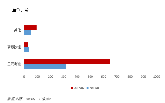2017年及2018年新能源推廣目錄中乘用車應用電池種類
