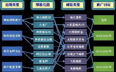 4.應(yīng)用階段。將不同類型儲能的推廣應(yīng)用分為四個階段,即“當(dāng)前”、“2019-2020年”、“2021-2025年”、“2026-2030年”。其中,抽水蓄能和化學(xué)電池儲能在現(xiàn)階段已開始推廣應(yīng)用;下一步可開展大規(guī)模儲熱和太陽能熱發(fā)電技術(shù)的應(yīng)用推廣;在“十四五”期間,新型壓縮空氣和飛輪儲能的應(yīng)用有望突破;而在2025年以后,大規(guī)模制氫和電磁儲能有望獲得大規(guī)模應(yīng)用。