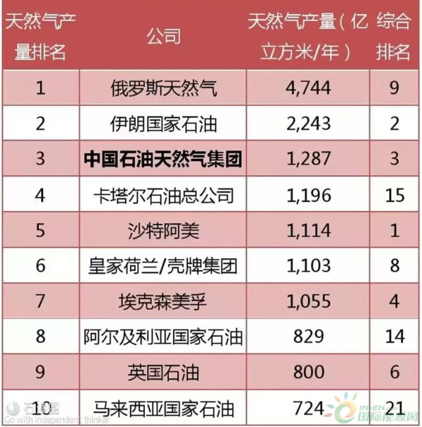天然氣產(chǎn)量:TOP10共1.5萬億立方米