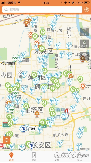 截至目前,西安市已有17653輛新能源汽車、887根充電樁接入該平臺(tái),使用“西安e充網(wǎng)”手機(jī)軟件便可完成一站式充電。