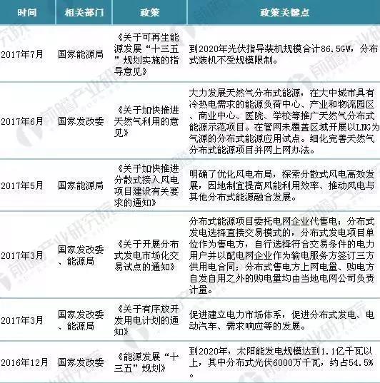 前瞻產(chǎn)業(yè)研究院發(fā)布的《2018-2023年中國分布式能源行業(yè)市場前瞻與投資戰(zhàn)略規(guī)劃分析報(bào)告》對分布式能源的相關(guān)政策做了匯總: