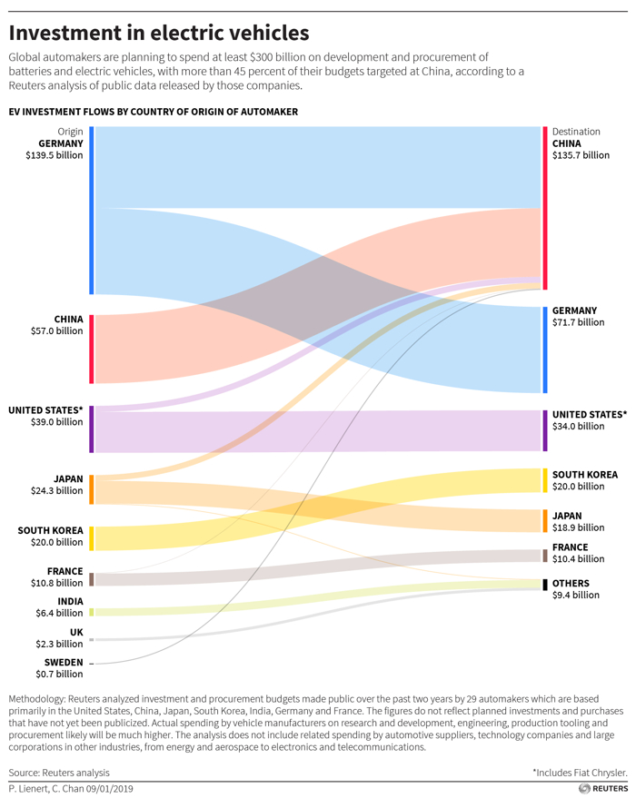 隨著中國(guó)和其他國(guó)家加大對(duì)傳統(tǒng)汽油車(chē)和柴油車(chē)的限制,汽車(chē)行業(yè)加快了向電氣化的轉(zhuǎn)變。一年前,全球汽車(chē)制造商們表示,計(jì)劃在電動(dòng)汽車(chē)開(kāi)發(fā)上投入900億美元。汽車(chē)制造商們?yōu)樵谥袊?guó)、歐洲和北美地區(qū)大規(guī)模生產(chǎn)電動(dòng)汽車(chē)投資了3000億美元,投資規(guī)模遠(yuǎn)超過(guò)埃及和智利等經(jīng)濟(jì)體。