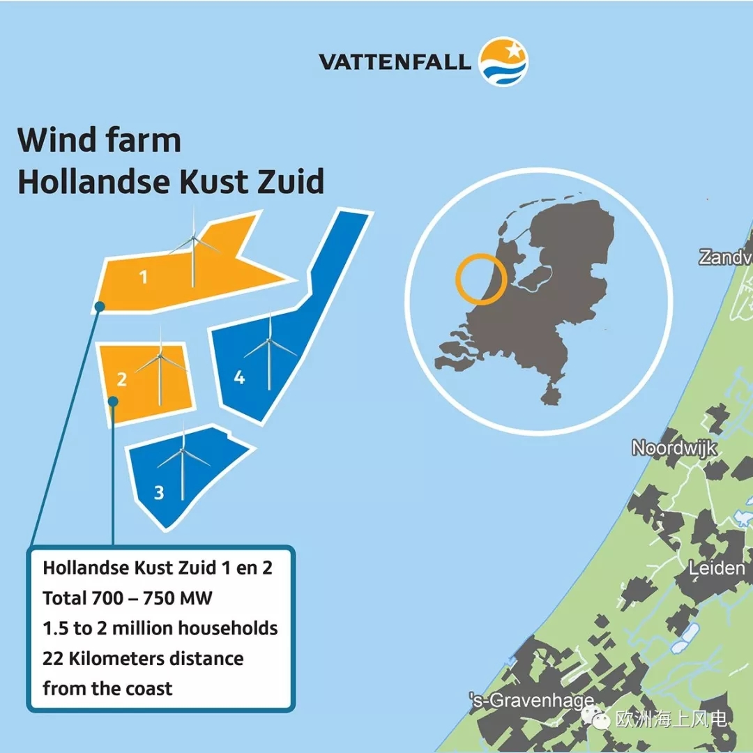 Hollandse Kust(Zuid) III 和 IV 兩個場址為兩個獨立的風(fēng)電場,允許的建設(shè)容量在342MW~380MW之間,由開發(fā)商自行確定。