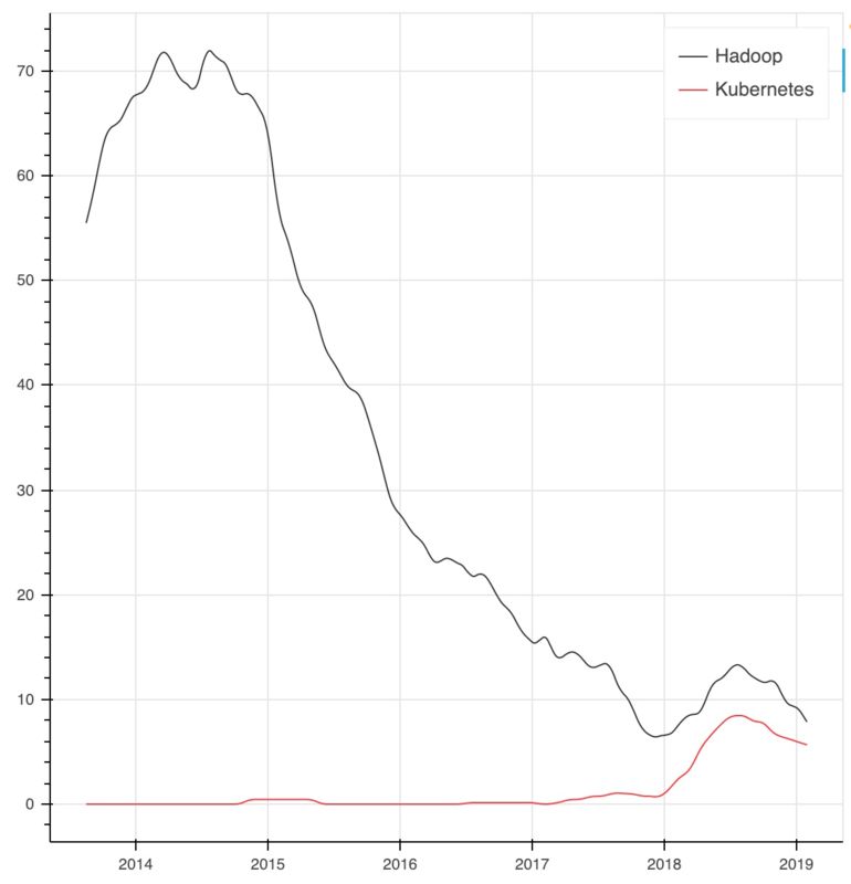 從 2013 年 Spark 開始接管 Hadoop 的那一刻起,Hadoop 就開始穩(wěn)步下滑。