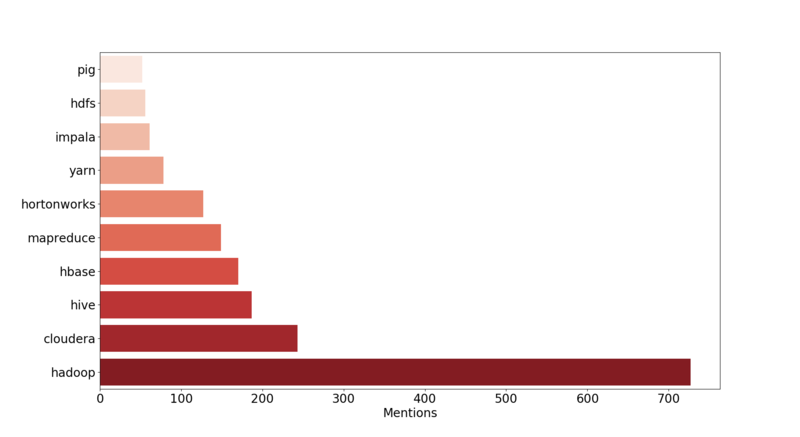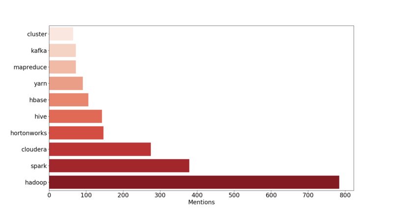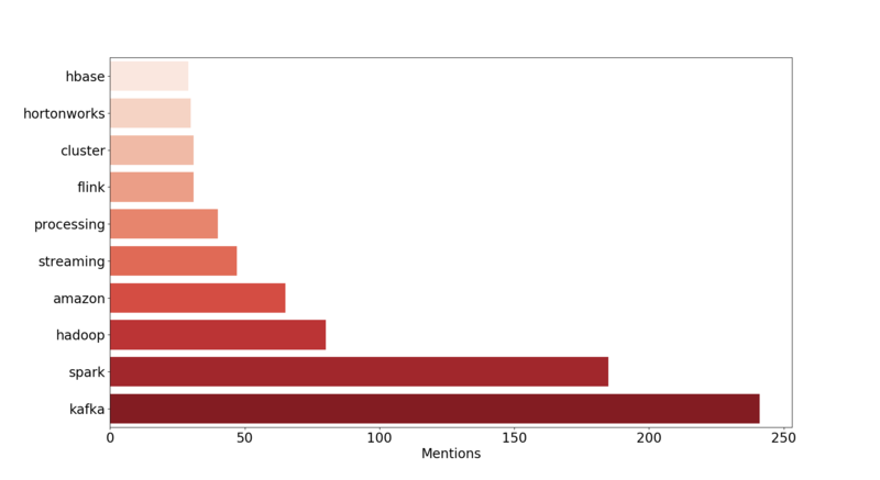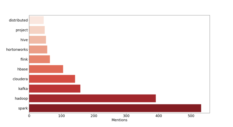 Spark 取代 Hadoop 的一名位的置,Kafka 進入前三。大多數(shù)舊項目(HDFS、YARN、MR、PIG……)都沒有進入前十。