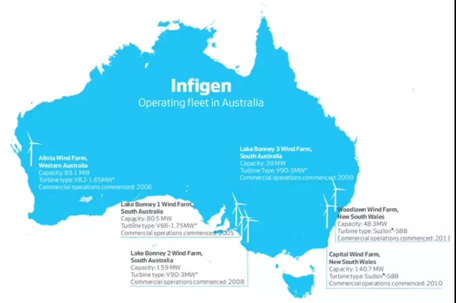維斯塔斯所服務(wù)的Infigen Energy的風(fēng)電資產(chǎn)