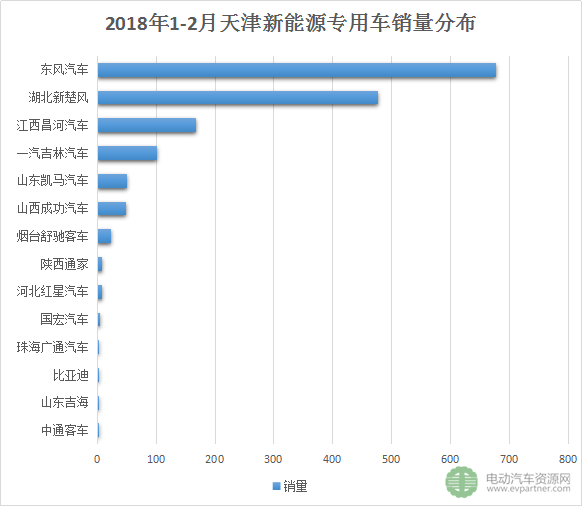據(jù)了解到,今年前2月,天津地區(qū)共銷售新能源專用車1574輛,占總銷量的26%。東風(fēng)、湖北新楚風(fēng)、昌河汽車、一汽吉林、凱馬汽車、成功汽車等在此地進(jìn)行銷售。東風(fēng)和湖北新楚風(fēng)兩家在天津市場(chǎng)排名靠前,主要因?yàn)楹彤?dāng)?shù)卮笮瓦\(yùn)營(yíng)商合作或通過自己的銷售網(wǎng)絡(luò),通過以租代售的方式進(jìn)行推廣。