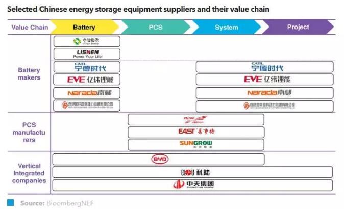 中國(guó)儲(chǔ)能市場(chǎng)的集成商主要由儲(chǔ)能設(shè)備廠(chǎng)商、電網(wǎng)企業(yè)、風(fēng)電光伏設(shè)備制造商、儲(chǔ)能項(xiàng)目開(kāi)發(fā)商、電動(dòng)汽車(chē)企業(yè)等構(gòu)成。數(shù)量眾多的設(shè)備廠(chǎng)商使得中國(guó)市場(chǎng)中獨(dú)立系統(tǒng)集成商很難找到市場(chǎng)空間。這與我們?cè)跉W洲、美國(guó)等市場(chǎng)觀(guān)察到的儲(chǔ)能市場(chǎng)早期創(chuàng)業(yè)型的系統(tǒng)集成商占主導(dǎo)極為不同。