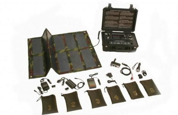 俄軍將“太陽能手提箱”重量縮減為北約相應(yīng)設(shè)備的一半!疤柲苁痔嵯洹钡某叽绮淮,里面有類似無線電臺的顯示器,箱子右側(cè)有兩個(gè)接頭,可插入5個(gè)接口的充電轉(zhuǎn)接器。這樣可最多同時(shí)給10個(gè)設(shè)備充電。太陽能電池由12個(gè)被防水布包裹的光電管組成。可緊湊地放入彈藥盒中。電池防水且耐撞擊,工作溫度區(qū)間為零下50攝氏度至零上70攝氏度。移動電源晴天充滿電需5小時(shí),陰天需8小時(shí)。由于其外形結(jié)構(gòu)便攜,作戰(zhàn)人員可在行軍時(shí)將其放在背包里充電。