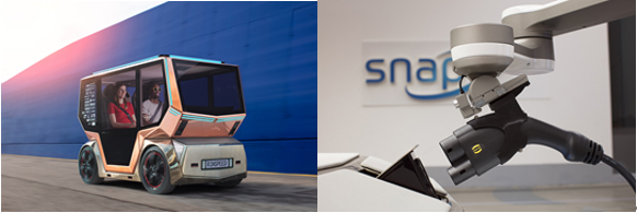 文字說明:“microSNAP”:浩亭與Kuka共同展示以自主方式為電池充電的機(jī)器人控制充電。