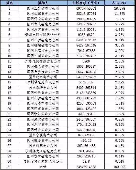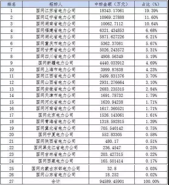 一、2017年省網(wǎng)公司招標(biāo)數(shù)量分布