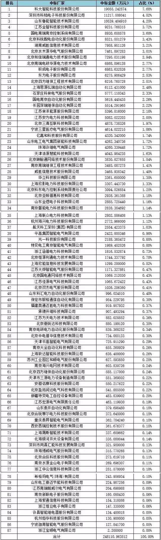2017年,總量近25億元的饕餮盛宴最終由91家公司分享,其中排名第一的科大智能金額超過1.9億元,超越傳統(tǒng)優(yōu)勢(shì)的二次設(shè)備廠家,值得關(guān)注。在排名前列的公司中,魯能智能和國電南瑞均屬于國網(wǎng)系公司,積成電子、東方電子是傳統(tǒng)意義上的自動(dòng)化優(yōu)勢(shì)企業(yè),而科陸、威勝等則屬于用電信息采集領(lǐng)域的巨頭,由此可見,配網(wǎng)自動(dòng)化設(shè)備供貨商組成結(jié)構(gòu)更加多元化,供應(yīng)主體更加分散。