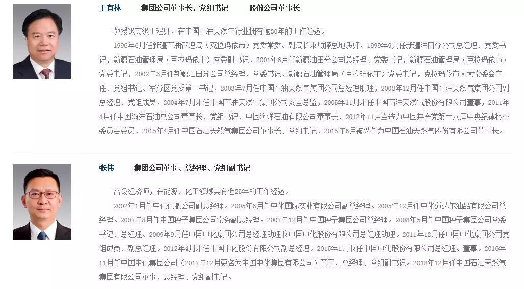 中國石油董事長王宜林搭檔總經(jīng)理張偉