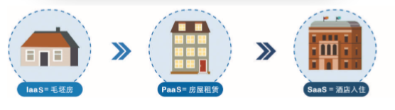 云計算的層次類似于人類住宅的演變過程。以前,在農村房子都是自己建,耗費的人力成本高、時間精力多,隨著城鎮(zhèn)化發(fā)展,住宅先由開發(fā)商集中建設、管理,之后出售或出租給用戶。IaaS就像毛坯房,開發(fā)商建好后出售,業(yè)主根據自己的喜好裝修使用;PaaS就像房屋租賃,對房屋用途、屋內裝修等有所限制;SaaS就像酒店的直接拎包入住,不用費心房屋維護、管理,而且還有不同風格和價位,可供隨意選擇。