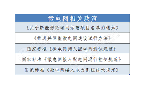 2017年5月,國家公布了28個新能源微電網(wǎng)示范項目,其中包括24個并網(wǎng)型微電網(wǎng)與4個獨立型微電網(wǎng),同年7月,《推進并網(wǎng)型微電網(wǎng)建設試行辦法》印發(fā),鼓勵各類企業(yè)、專業(yè)化能源服務公司投資建設、經(jīng)營微電網(wǎng)項目;鼓勵地方政府和社會資本合作(PPP),以特許經(jīng)營等方式開展微電網(wǎng)項目的建設和運營。為了規(guī)范微電網(wǎng)技術的發(fā)展,保證微電網(wǎng)接入電網(wǎng)的安全性,《微電網(wǎng)接入配電網(wǎng)測試規(guī)范》、《微電網(wǎng)接入電力系統(tǒng)技術規(guī)定》等多項國家標準實施,這在一定程度上顯示了我國對微電網(wǎng)的重視程度。
