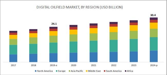“預(yù)計(jì)到2024年,全球數(shù)字油田市場(chǎng)規(guī)模將從2019年的241億美元增加到304億美元,復(fù)合年增長(zhǎng)率為4.77%,”國(guó)際市場(chǎng)研究機(jī)構(gòu)Markets and Markets在最新的報(bào)告中透露,“新技術(shù)進(jìn)步,石油和天然氣運(yùn)營(yíng)商對(duì)擴(kuò)大生產(chǎn)的需求增加,并且更加關(guān)注油田的遠(yuǎn)程管理以進(jìn)行工藝優(yōu)化和自動(dòng)化是推動(dòng)數(shù)字油田市場(chǎng)發(fā)展的關(guān)鍵因素!