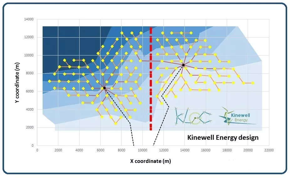 眾所眾知,設(shè)計(jì)海上風(fēng)場(chǎng)相比于陸上風(fēng)場(chǎng)涉及更多復(fù)雜的因素,必須同時(shí)考慮例如風(fēng)向、水深、侵蝕區(qū)域、基礎(chǔ)成本、水下障礙物、電纜類型、電纜損耗以及風(fēng)機(jī)尾流影響等等,要精準(zhǔn)地設(shè)計(jì)每個(gè)風(fēng)機(jī)點(diǎn)位以確保下風(fēng)向的風(fēng)機(jī)風(fēng)能損失最小。