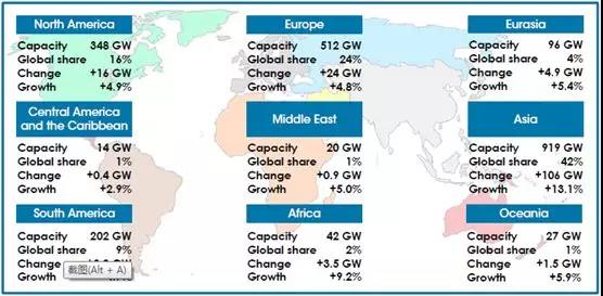 不同區(qū)域可再生能源的裝機(jī)容量情況