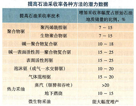 提高石油采收率各種方法的潛力數(shù)據(jù)