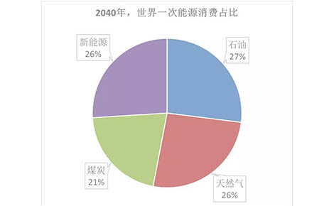 而到2040年,世界能源消費結(jié)構(gòu)將呈現(xiàn)出前所未有的多樣化。石油、天然氣、煤炭、新能源在一次能源消費中的占比幾乎旗鼓相當,分別占27%、26%、21%、26%。這意味著,能源行業(yè)將出現(xiàn)激烈競爭而非一家獨大的局面。