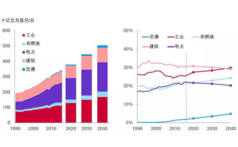 《展望》預(yù)測,到2040年全球天然氣消費量將達到5020億立方英尺/日,比2016年上漲46.78%。